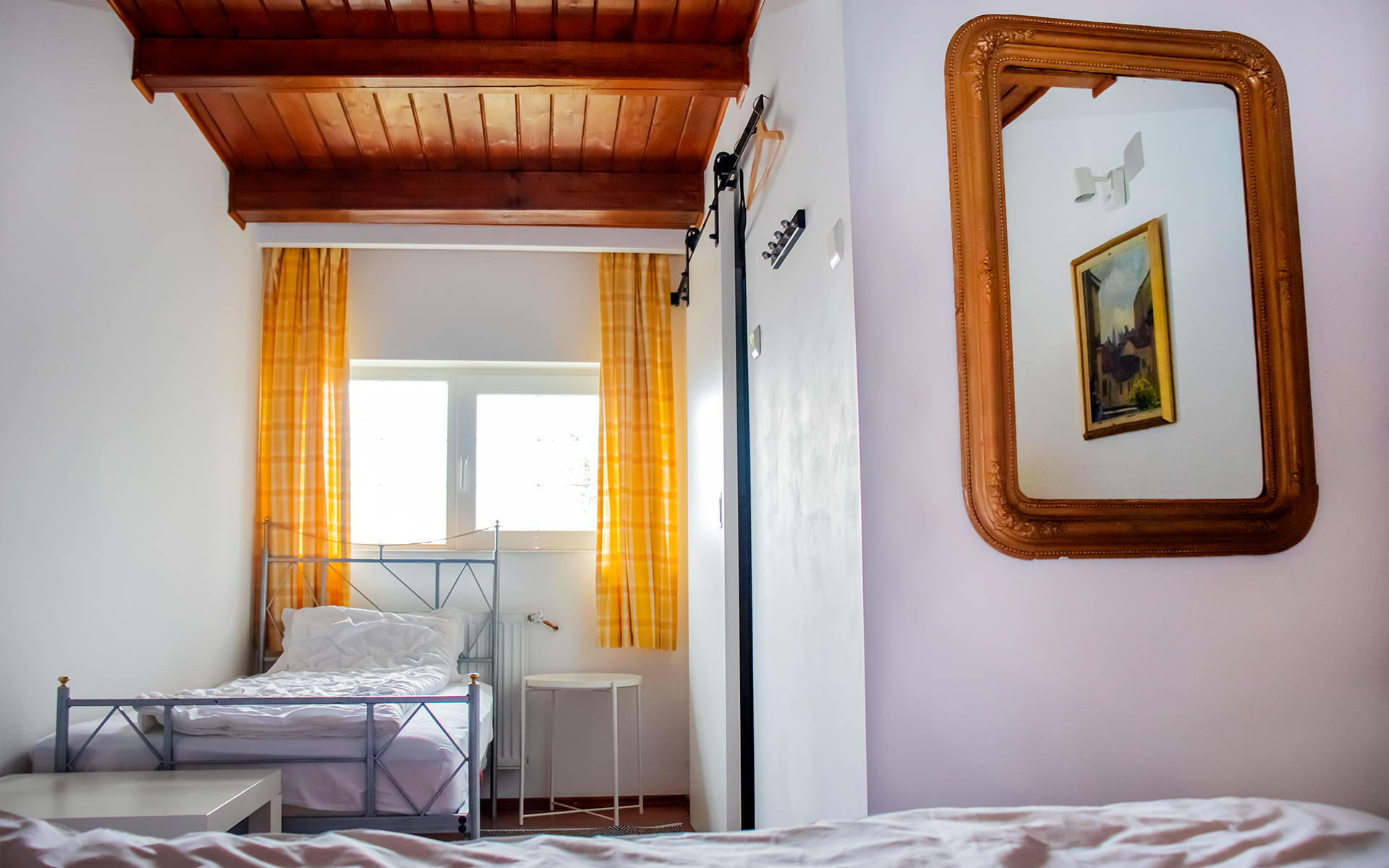 Spațiu prietenos pentru trei persoane, cu pat dublu și unul single, baie privată, paturi confortabile.